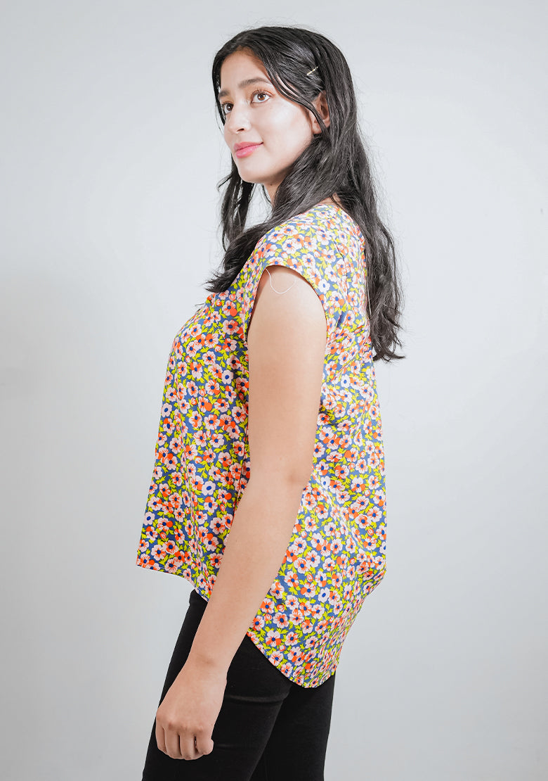 La blusa MM2154A para dama de Instyle F es una perfecta elección para aquellas que gusten lucir atractivas sin pasar desapercibidas. Con su diseño floreado en tono azul, es ideal tanto para usar casual como en eventos formales.