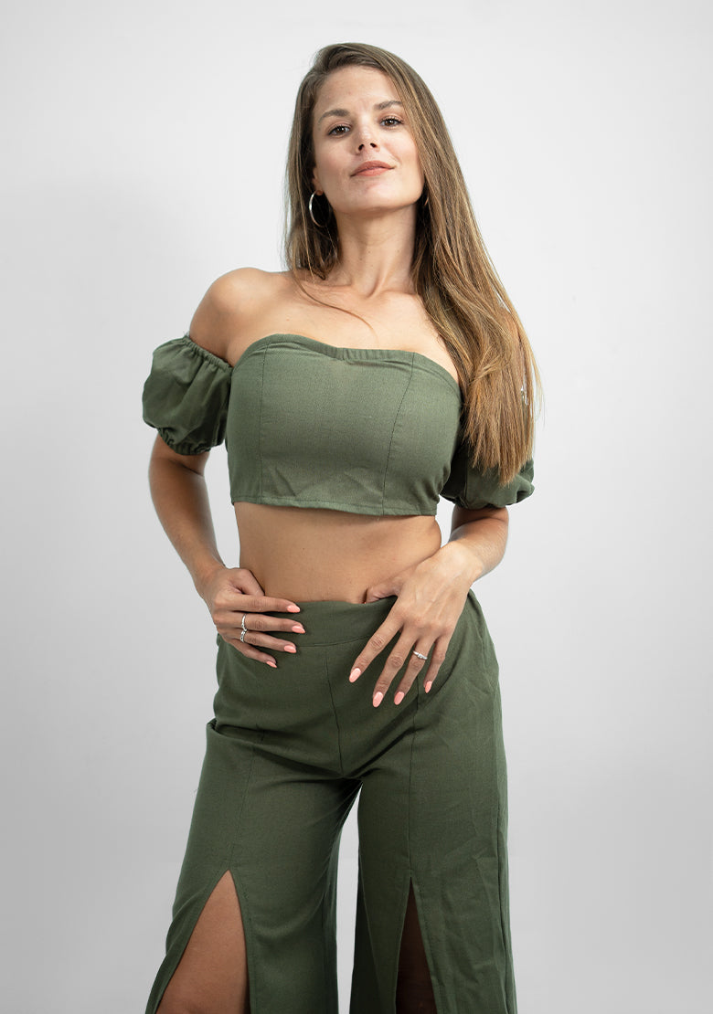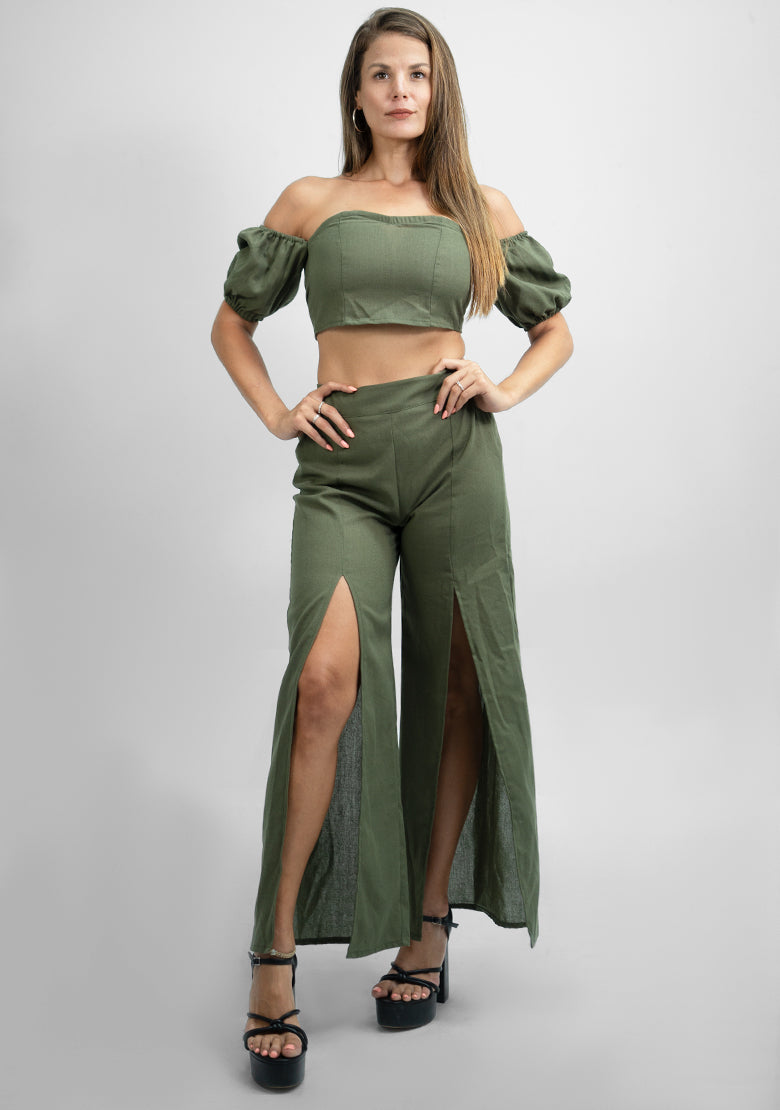 Conjunto para dama 3916LN de color militar de la marca exotica. Diseñado con materiales de alta calidad, este conjunto es perfecto para cualquier ocasión. Combina versatilidad y estilo en una sola prenda que te hará lucir elegante y moderna. ¡Haz una declaración de moda con el conjunto 3916LN!