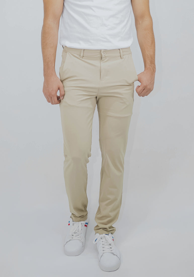 Pantalón FLEX PERFORMANCE de Fitters Originals, especialmente diseñado para caballero con corte slim. Hecho de tela duradera con color khaki para un look moderno. Ofrece confort y libertad de movimiento para cualquier actividad.