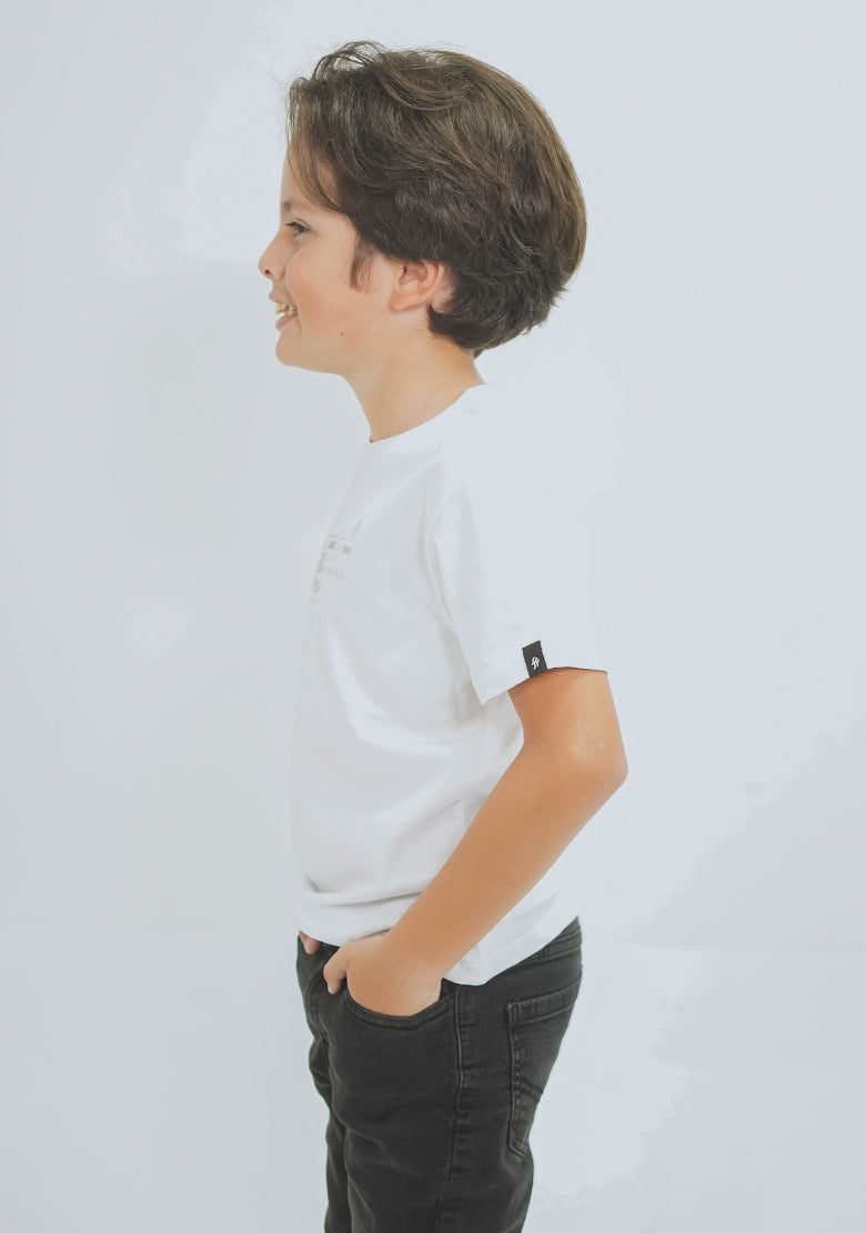 La playera NINETY es perfecta para tu niño. Disponible en color blanco y de la marca fitters originals, esta playera no solo se ve bien, sino que también es duradera. ¡Añádela a su guardarropa y asegura comodidad y estilo en todas sus actividades!